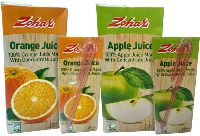 Available in 2 flavours and sizes. Orange and Apple, 1 litre and 250ml 1 litre come in trays of 12. 250ml come in trays of 27.