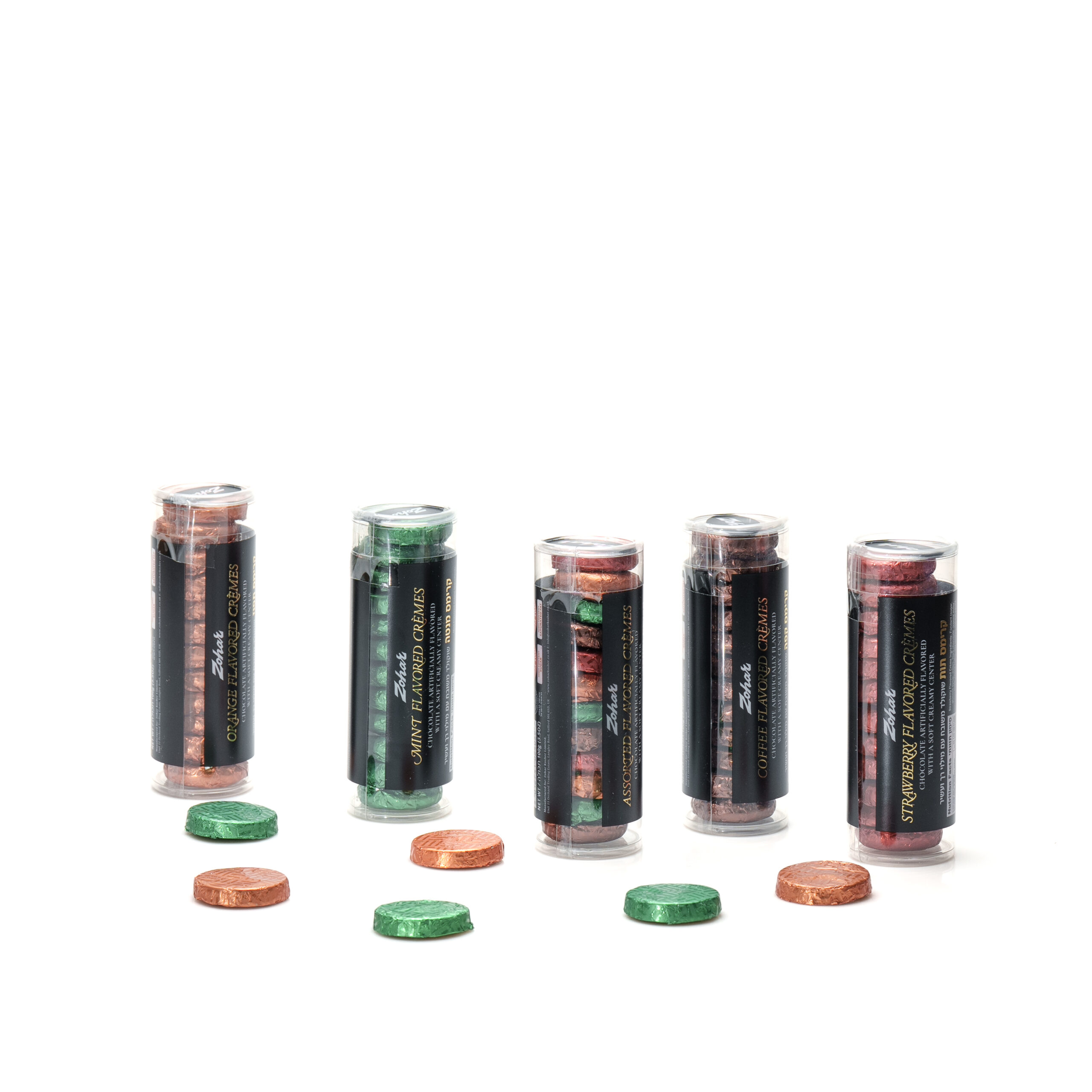 Smooth discs of chocolate with a soft, creamy centre — a classic confection perfect for sharing or enjoying on your own. Each piece is individually wrapped in coloured foil: Assorted flavour tubes are also available, combining all four in one convenient pack.