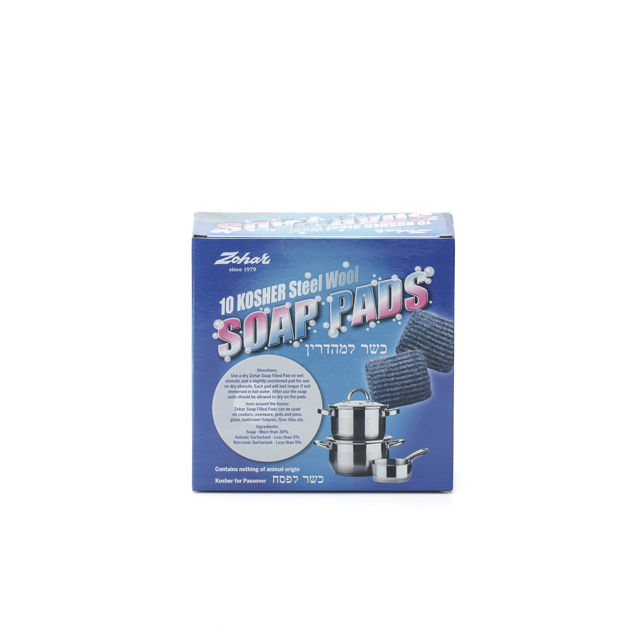 Durable steel wool pads with built-in soap to tackle tough grease and burnt-on stains, making cleaning pots and pans quicker and easier.