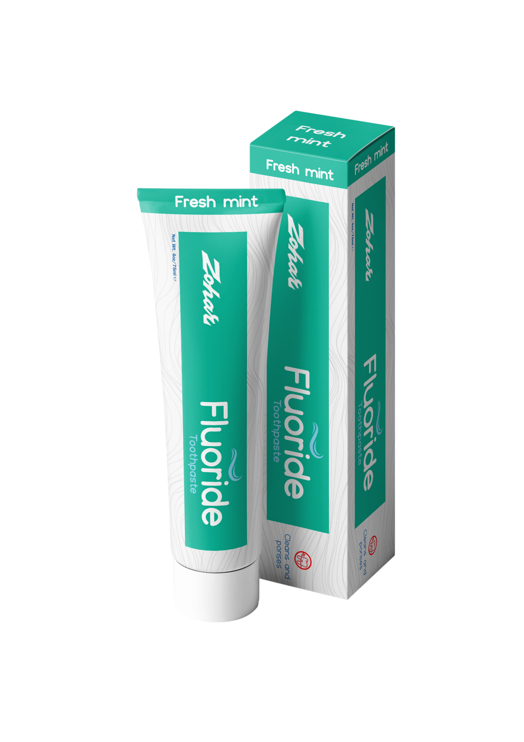 Zohar Freshmint Toothpaste contains fluoride for cavity protection and overall oral care. Its fresh, invigorating mint flavor provides a slightly stronger taste for those who prefer a more pronounced minty clean.